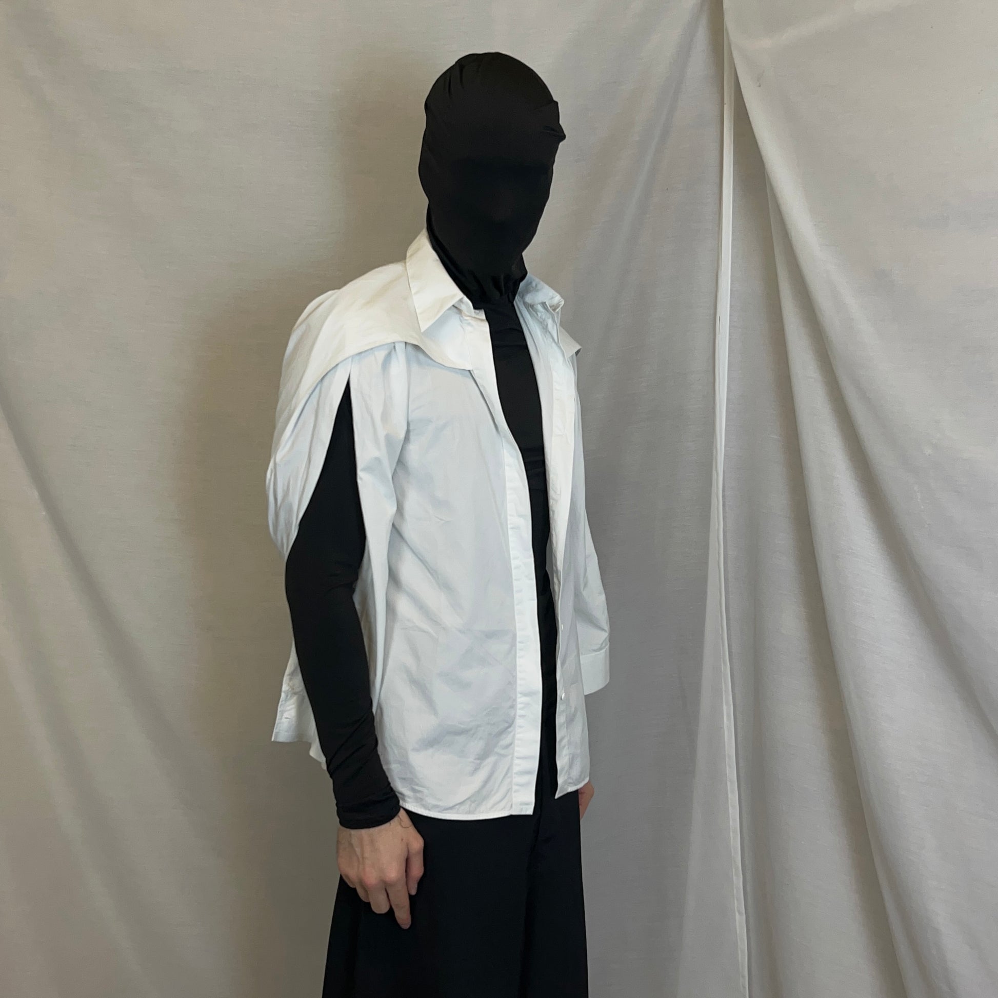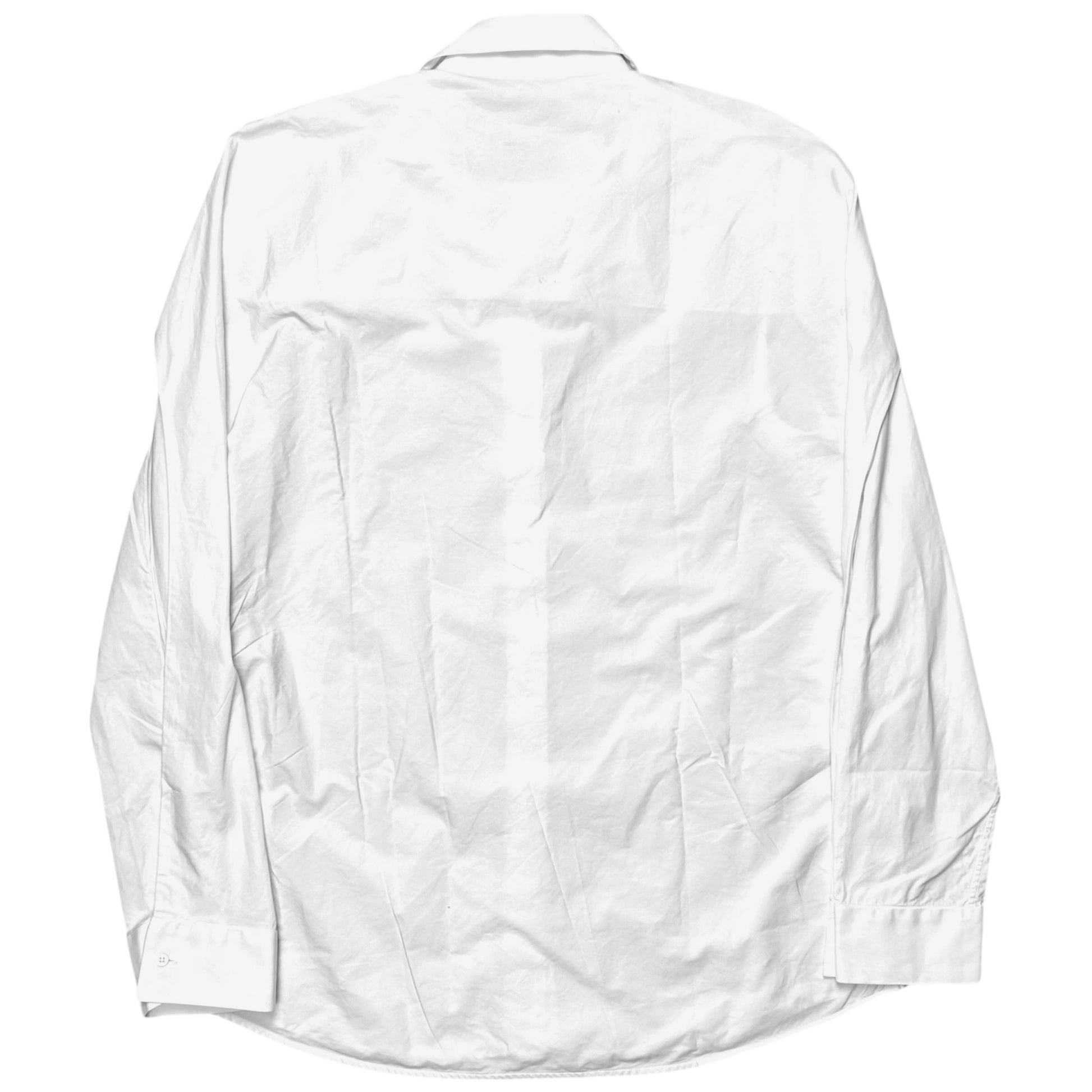 Dress shirt from the Balenciaga Paris Fall Winter 2013 ready to wear collection which was the debut show of Alexander Wang. Double layered sleeve and shoulder construction which creates an interesting 3D shape with open parts on both arms allowing different styling options. Concealed button closure with a classic collar. Slightly oversized cut. Made from a purre white cotton poplin fabric.