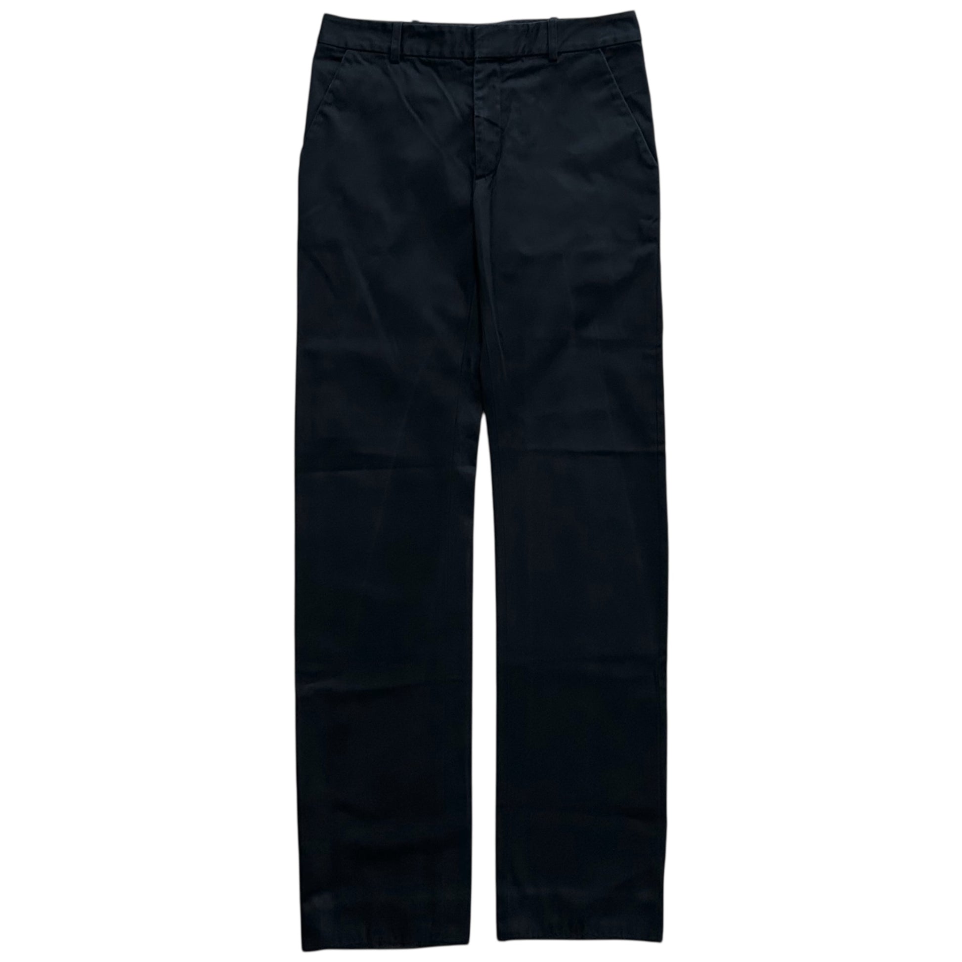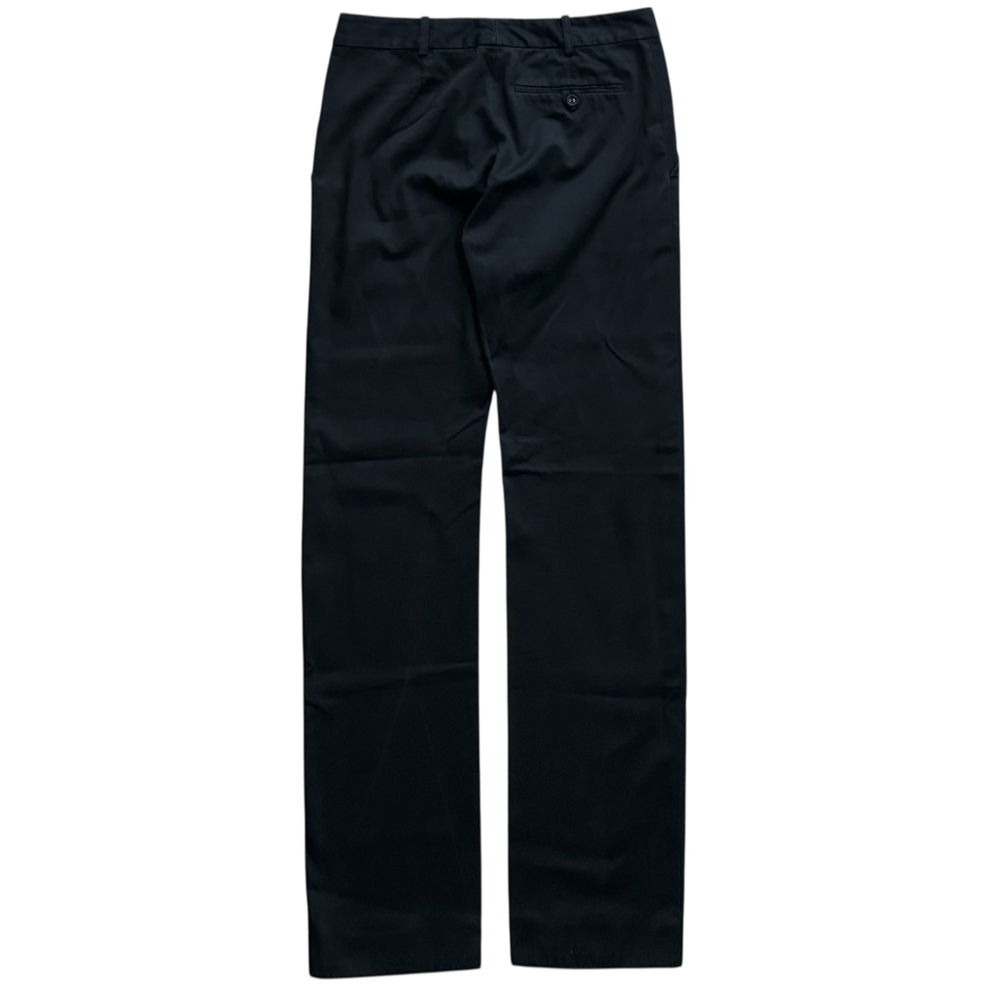Chino trousers from the Fall Winter 2007 collection of the Balenciaga Paris Fall Winter 2007 collection which was designed by Nicolas Ghesquiere. Classic construction with slid pockets at the front and back. Made from thick washed black cotton. Straight cut / Slim cut. Retailed for €.
