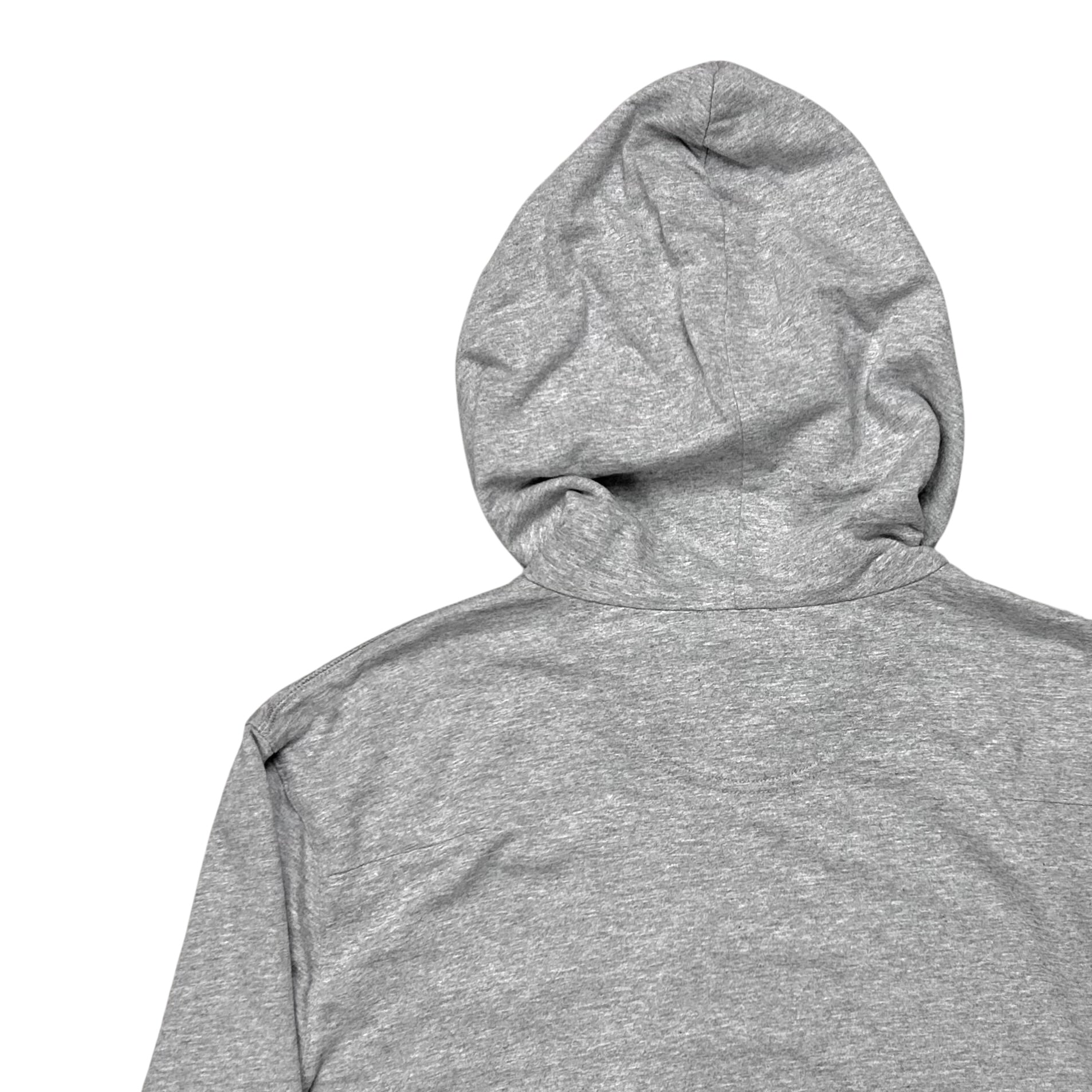 Hooded sweater from the late 2010s of Dior Homme back when Kris Van Assche was creative director.. Silver signature Lampo bio closure with further silver lace tips at the drawstring hood. Neck panel with reinforced seams and a tonal logo embroidery at the chest. Made from a light grey cotton and elastane blend. Relaxed cut.