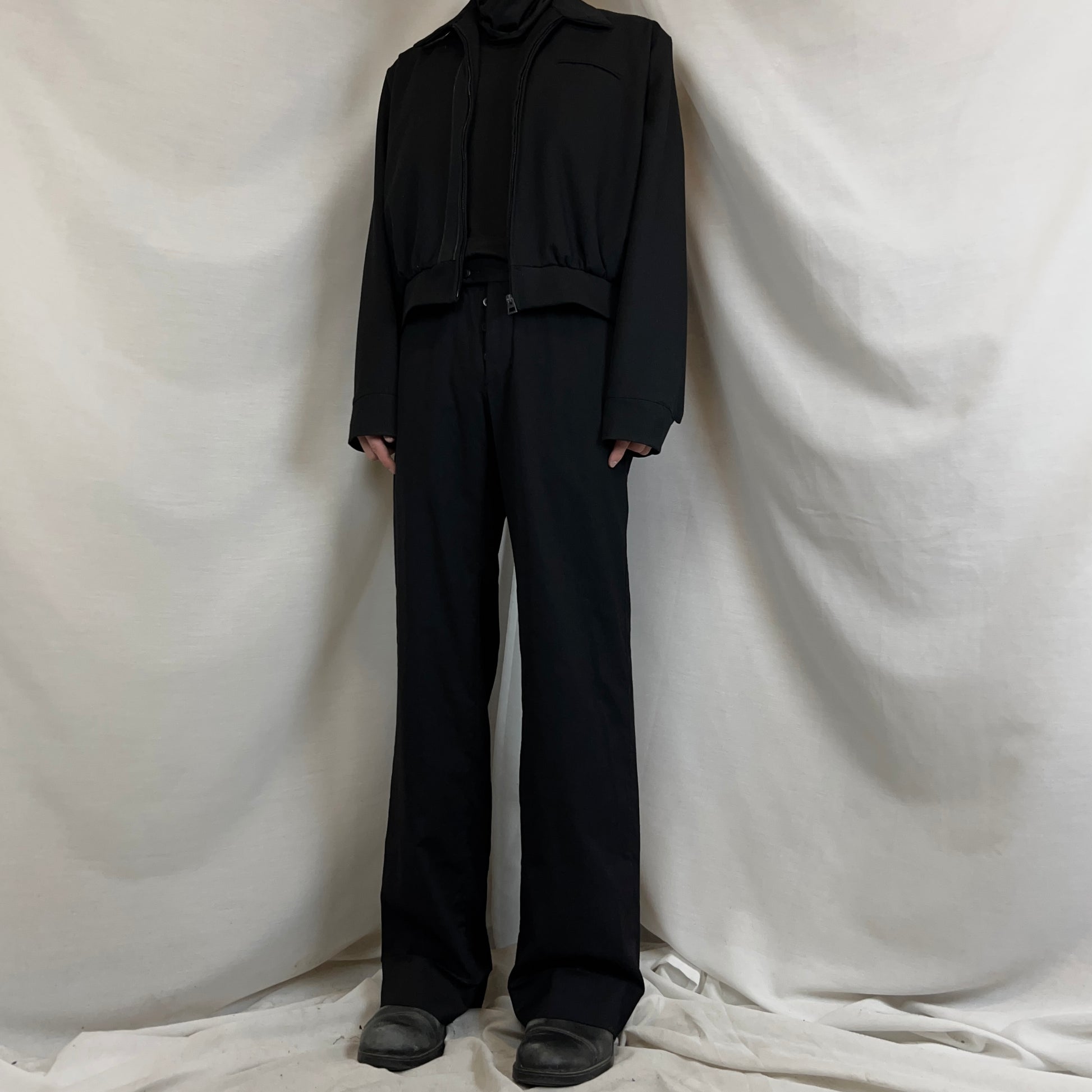 Casual pants from the mid to end 90s of Gucci back when Tom Ford was creative director. Classic construction with slid front pockets, flap back pockets and a concealed button fly. Made from a a black smooth wool material. Straight cut with a wide leg.