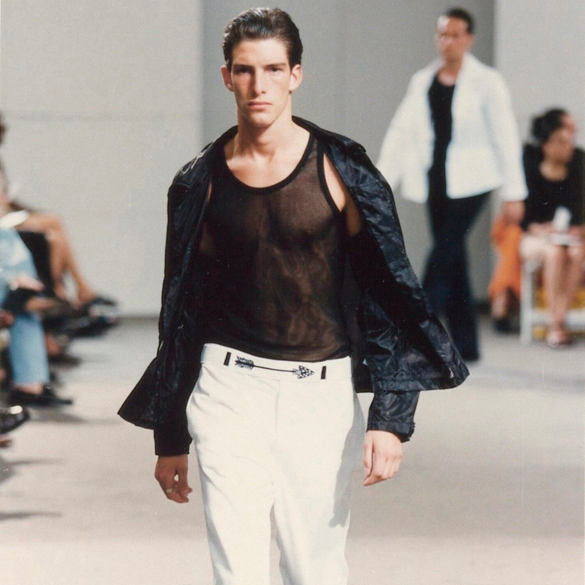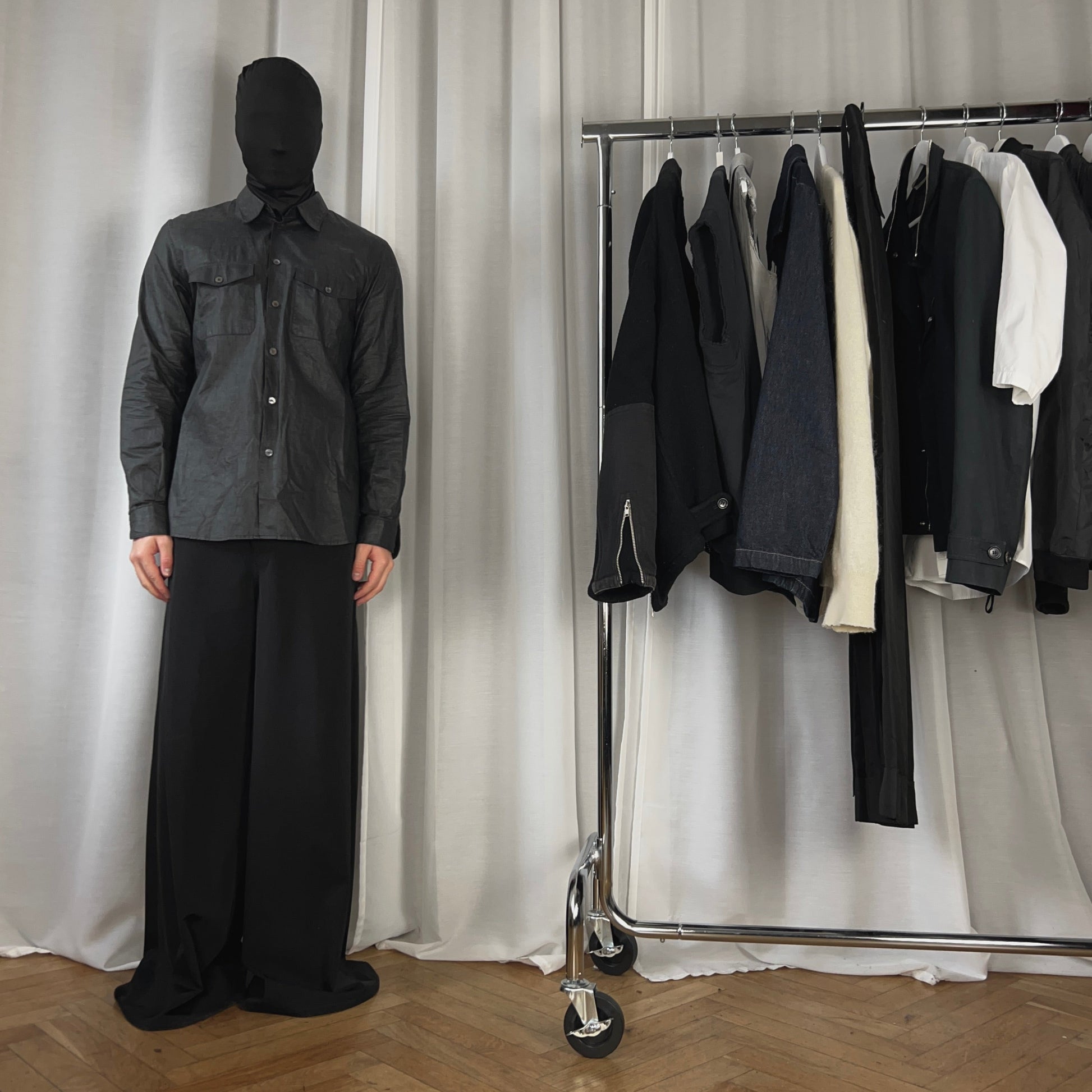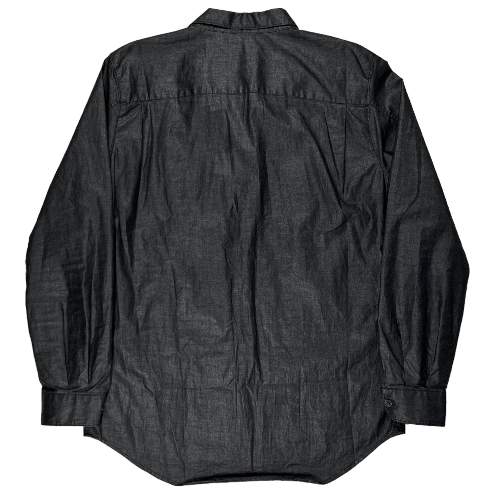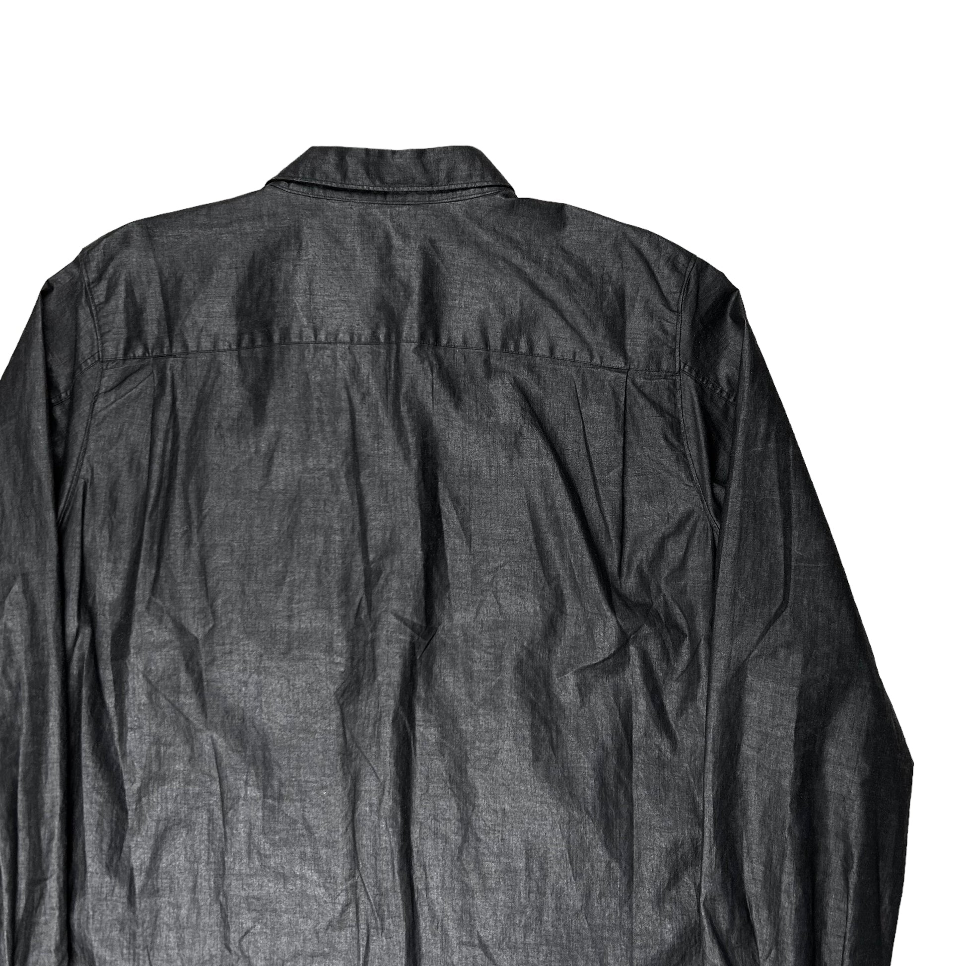 Over shirt from the Helmut Lang Spring Summer 1998 back when Helmut was still designing for the brand. Waxed texture which gives the black a lighter finishing. Distinctive work flap pockets at the chest with contrast button closure. Made from a cotton and polyurethane. Oversized cut.