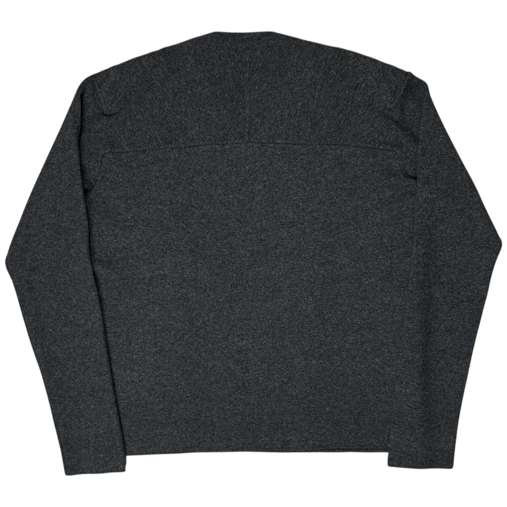 Crewneck jumper from the Jil Sander Fall Winter 2014 collection which was designed solely by the Jil Sander team. 3D bubble texture at the front center with a egular textured back and sleeves. Made from a cashmere, fleece wool and polyamide blend in dark grey. Short cut.