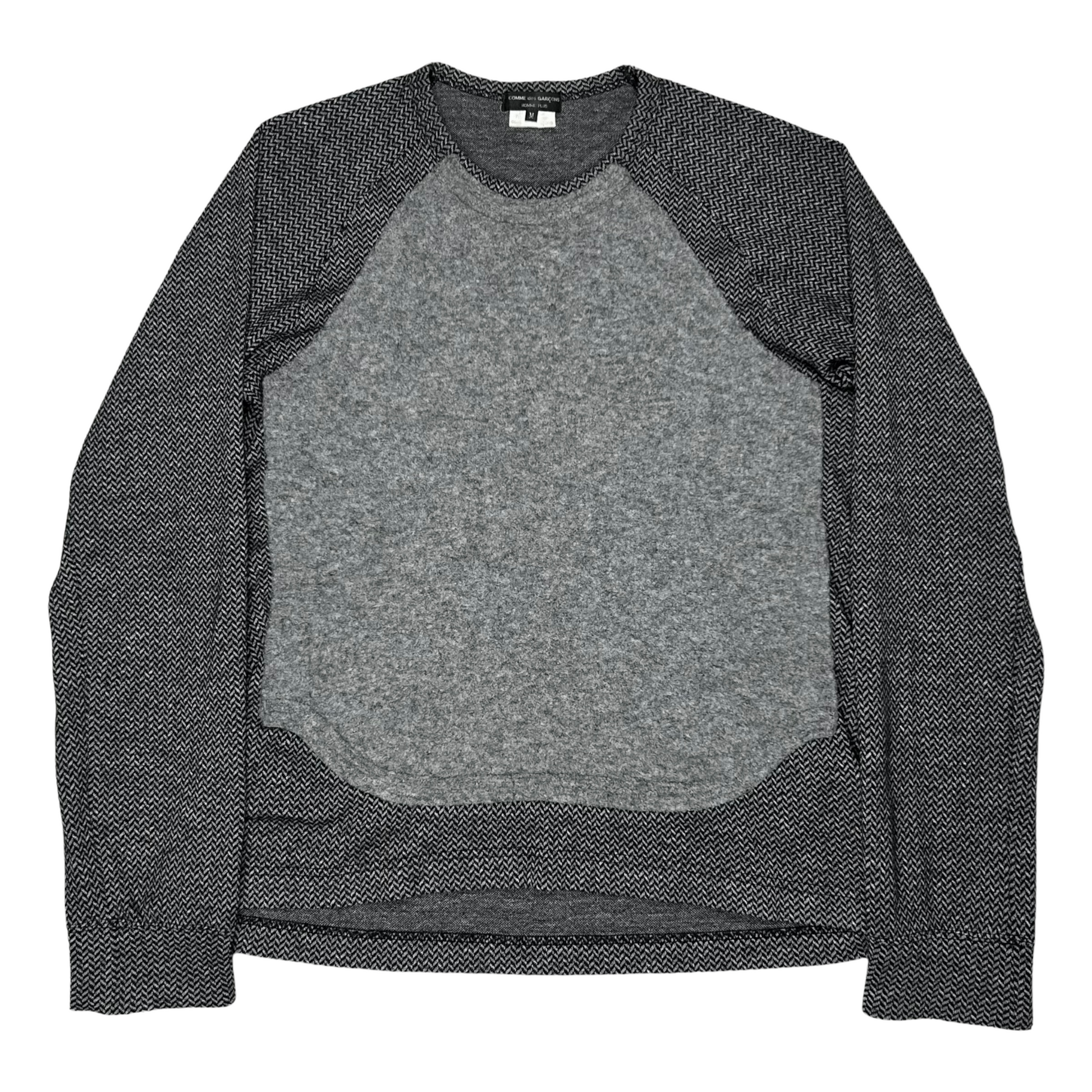 Crewneck sweater from the Fall Winter 2009 collection of CDGH+. Made from a cotton lana wool blend. Dark grey textured fabric with an light grey extra sew layer at the front. Regular cut. Retailed for around 500€.