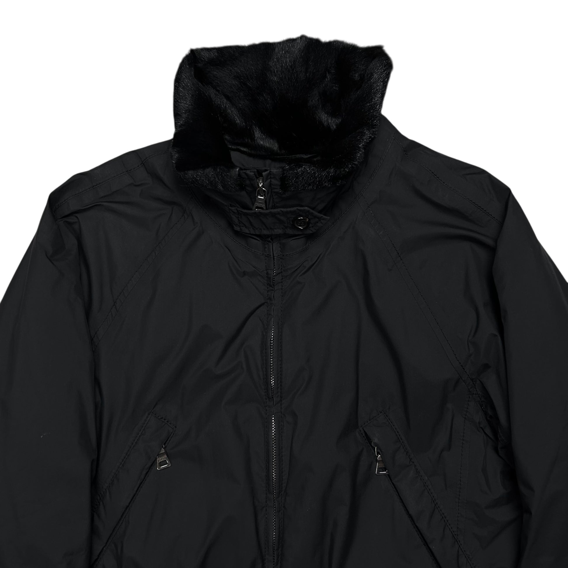 Prada Belted Goat Fur Collar Field Jacket