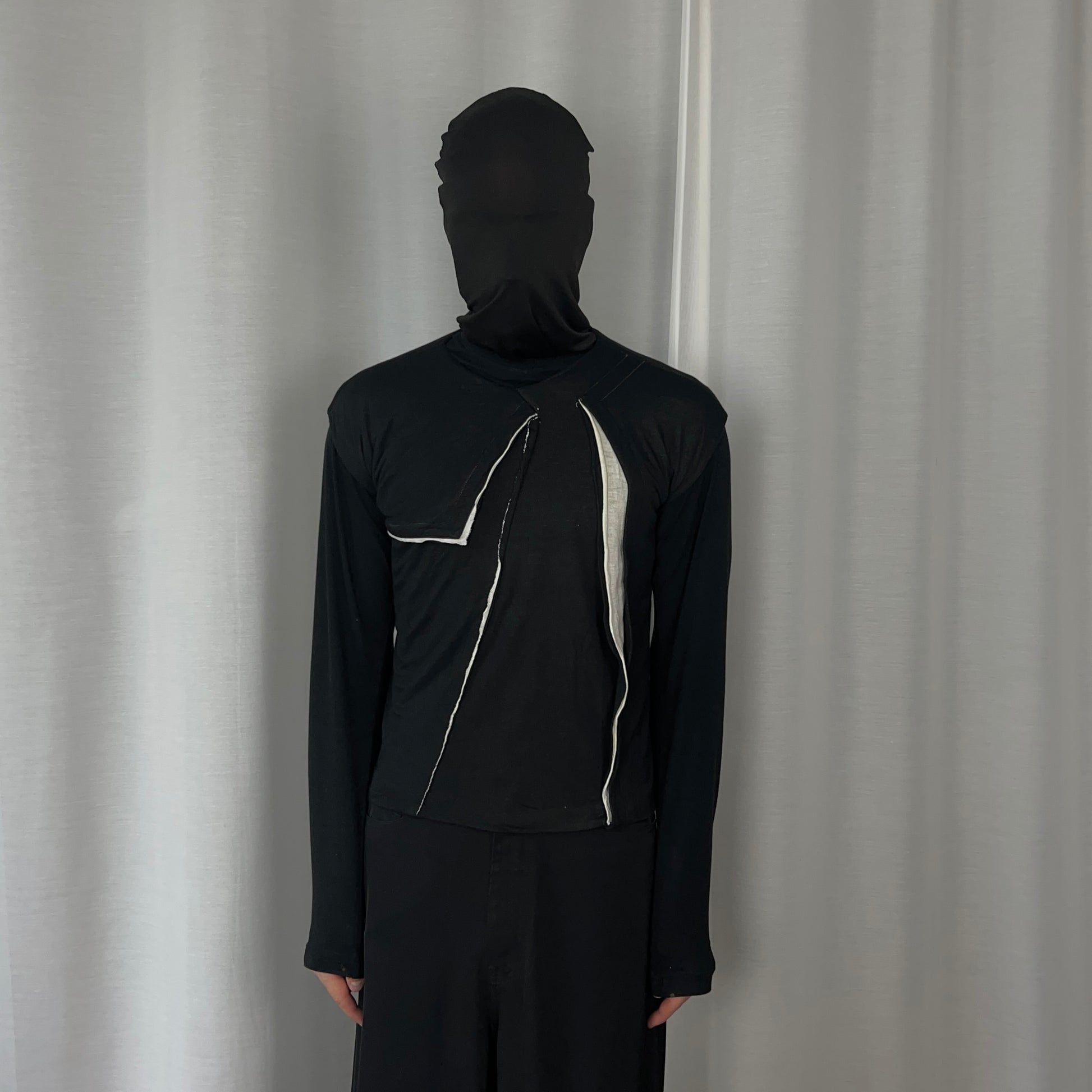 Tank tops from the Balenciaga Paris Fall Winter 2008 collection which was designed by Nicholas Ghesquiere. Asymmetric deconstruction with multiple panel layers stitched together with some contrasting white parts. Tonal zip at the back of the neck. Made from a black viscose blend. Boxy cut.