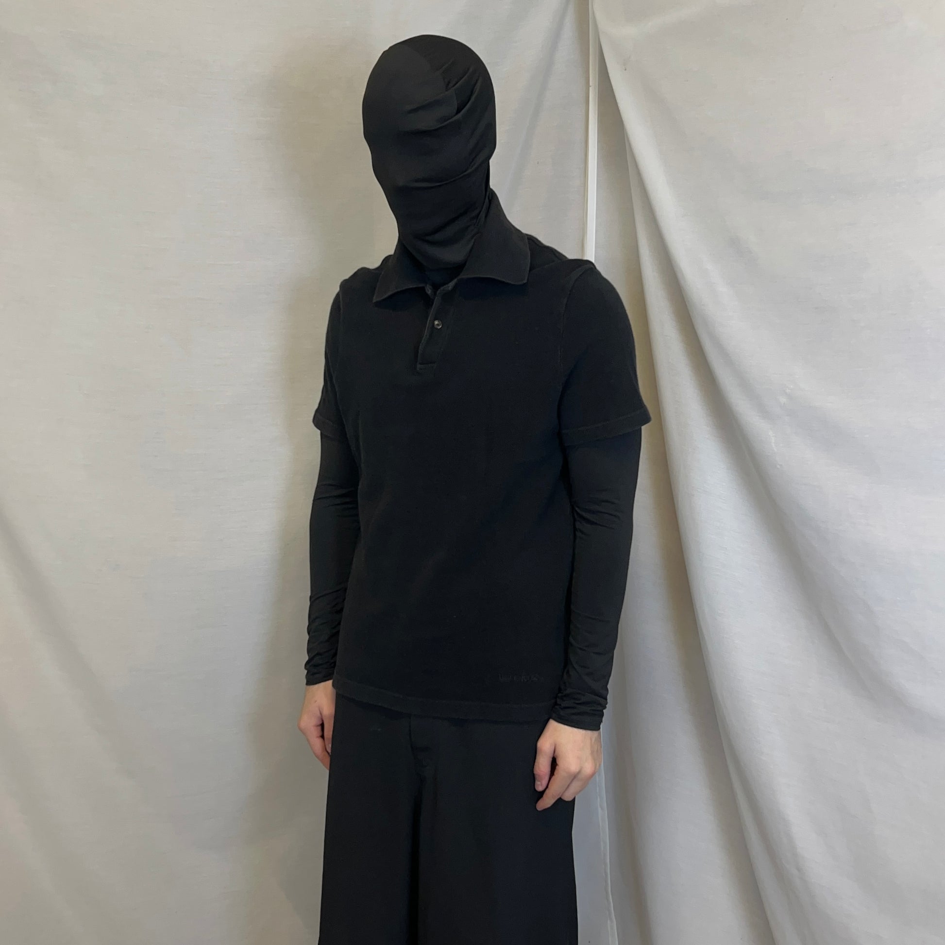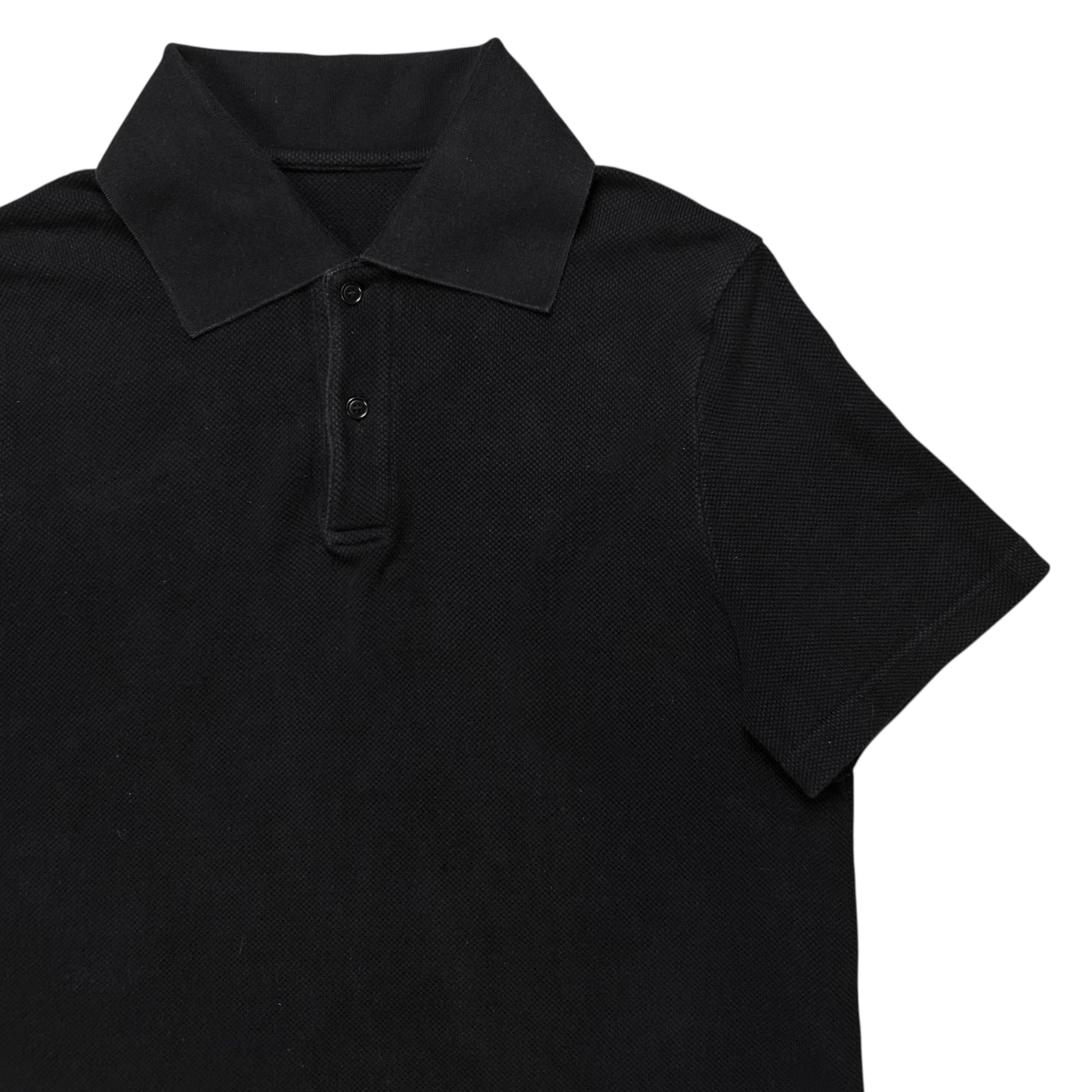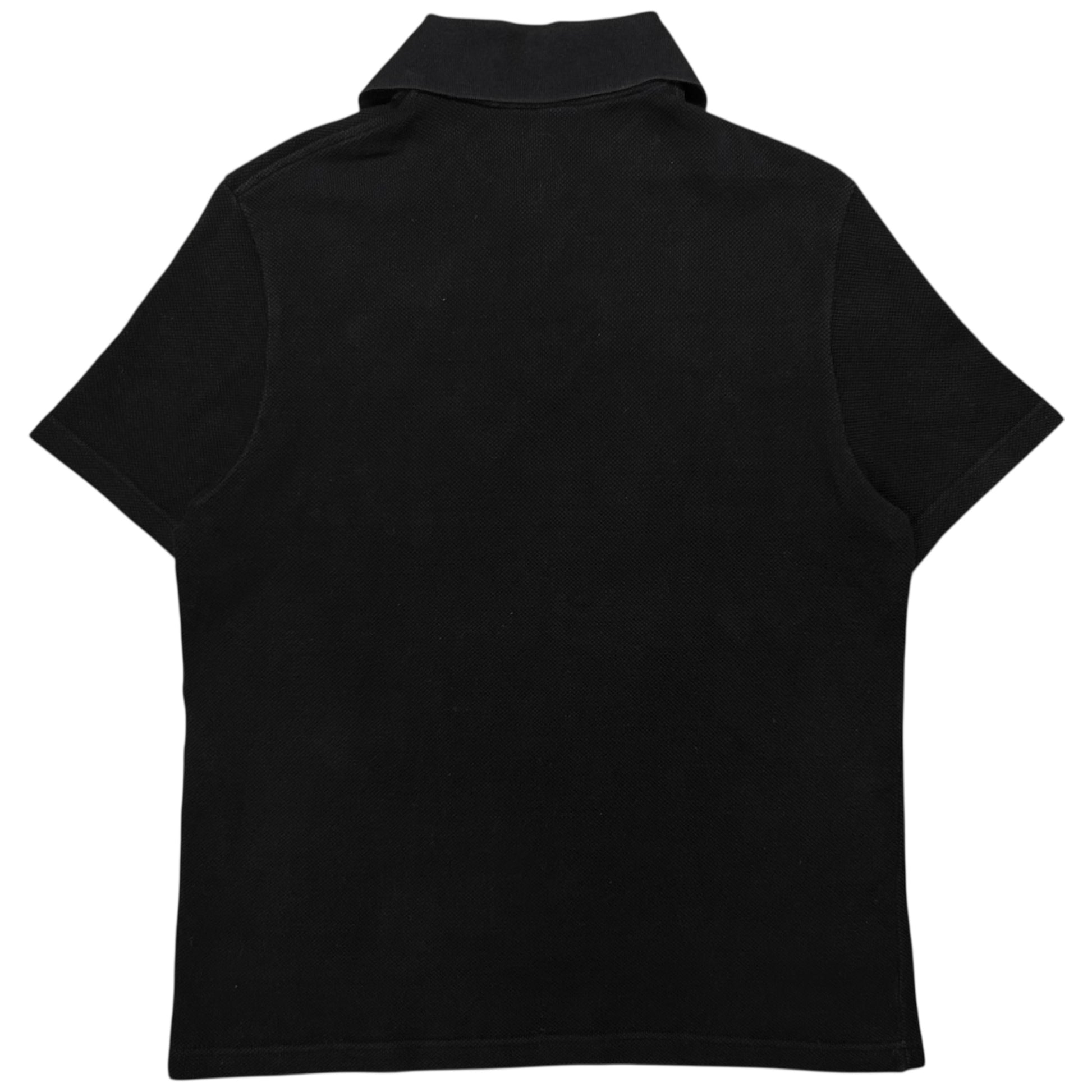 Polo short sleeve top from the Balenciaga Paris Fall Winter 2016 collection which was the debut Demna Gvasalia collection. Tonal Balenciaga logo embroidery at the hem. Classic foldable polo collar with tonal buttoning. Made from a thick waffle textured cotton fabric in black. Regular cut.