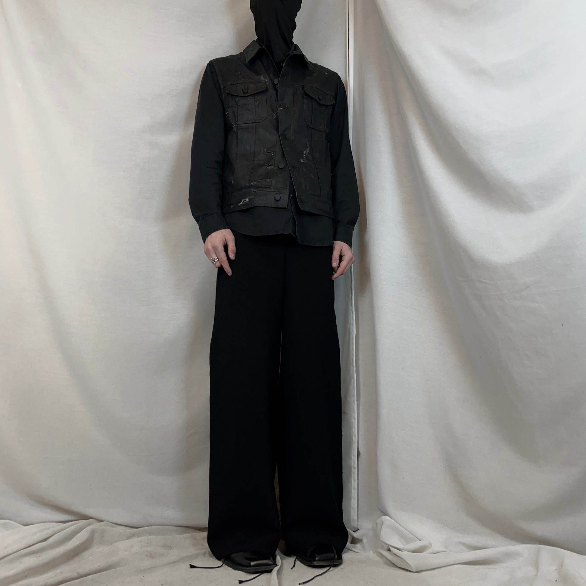 Casual trousers from the Balenciaga Paris Fall Winter 2019 collection which was designed by Alexander Wang. Simple construction with a concealed zip fly, slid front pcoket and an asymmetric flap pocket at the back. Made from a polyamide rayon blend witth a brushed texture. Wide cut.