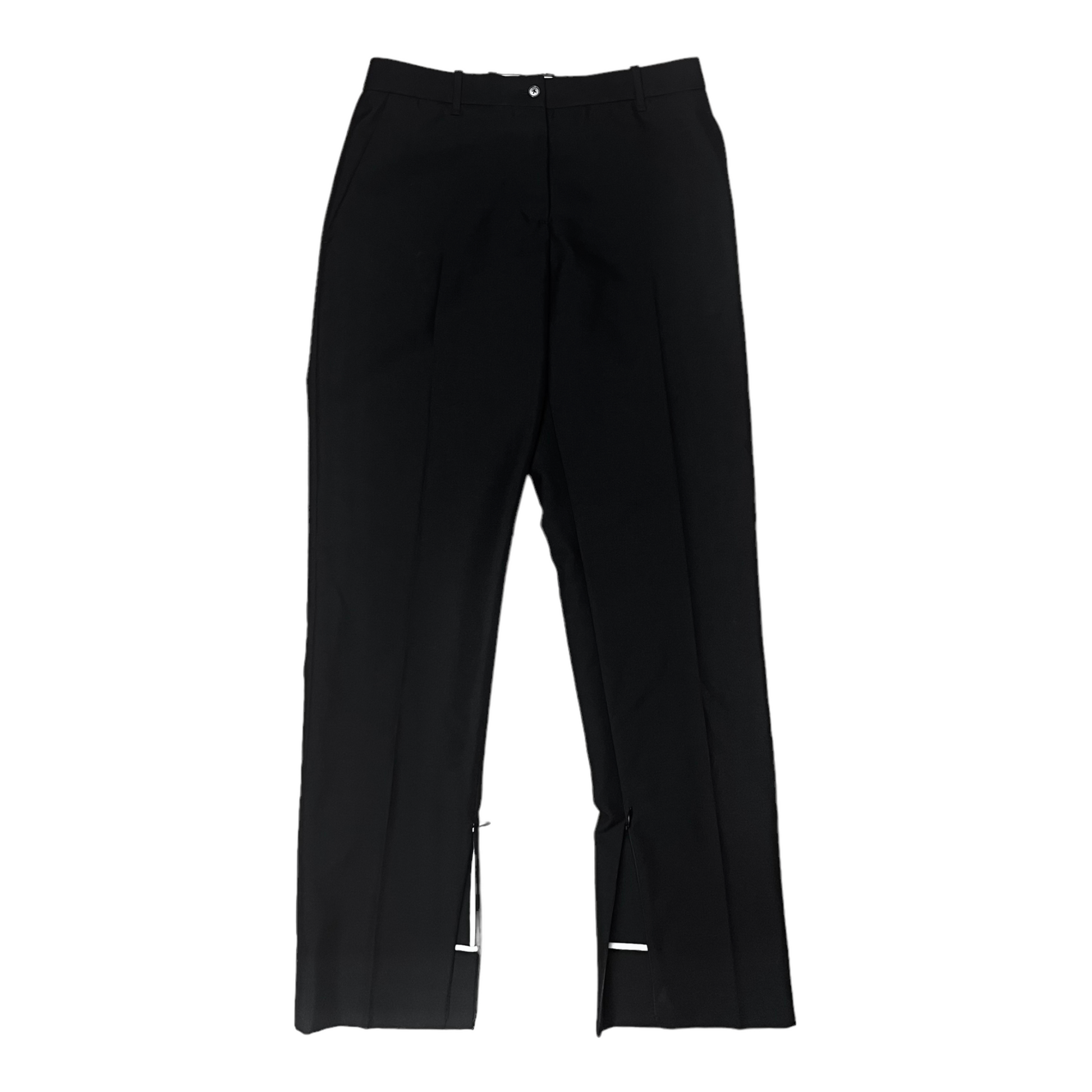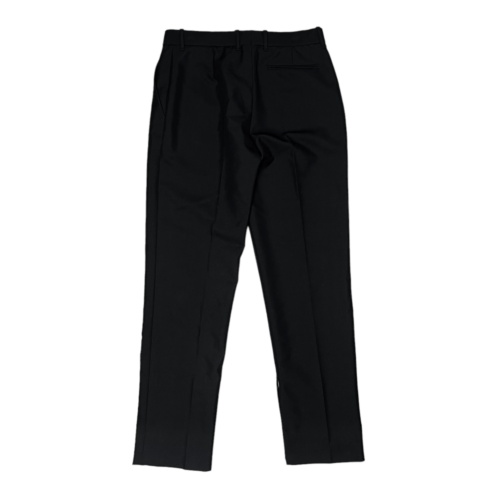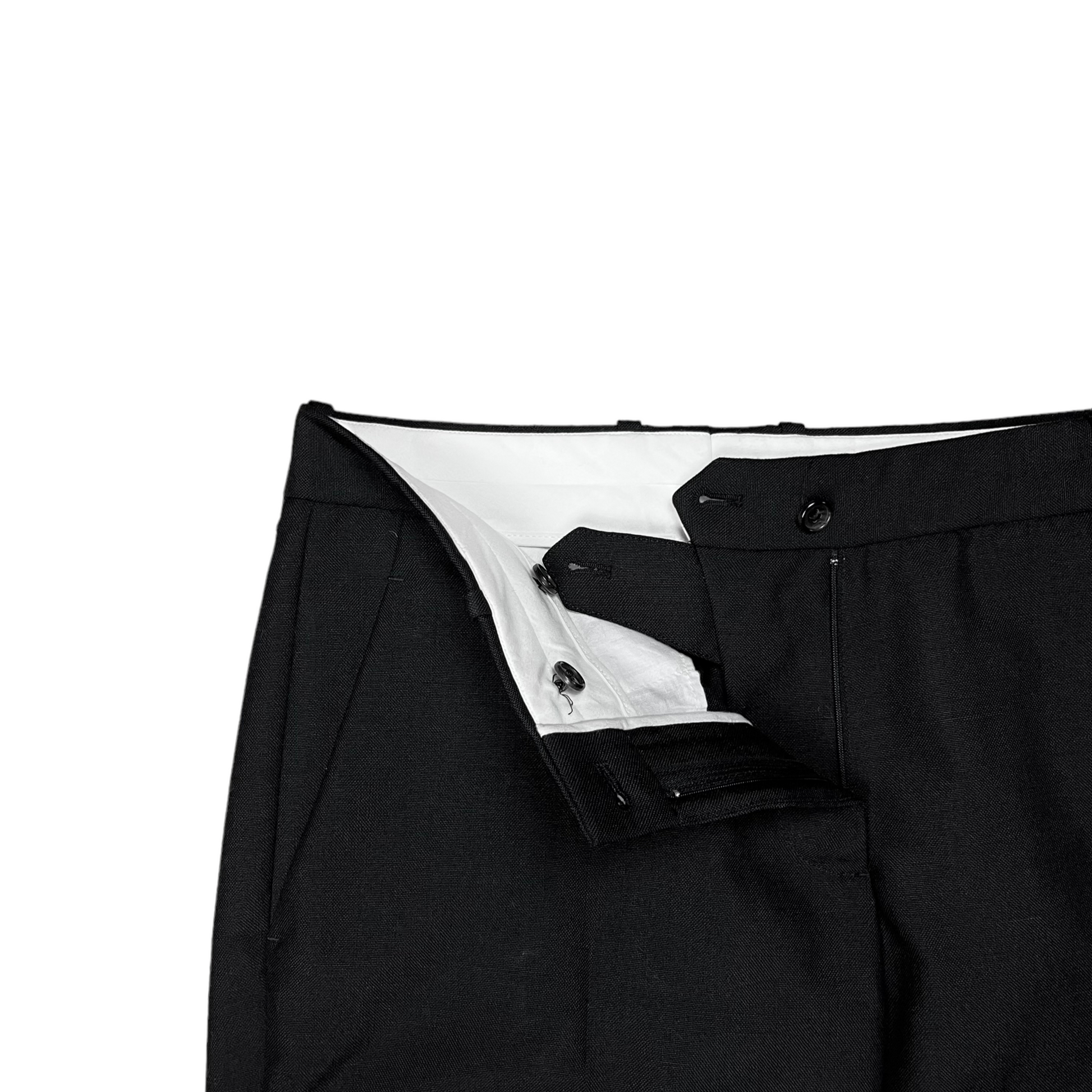 Black pleated suit pants from the iconic Raf Simons and CK cooperation . Hidden zip at the hem which can be opened to create a slight flare. Slim and tapered cut. Heavy and high quality wool material. Made in Italy. Retailed for around €.