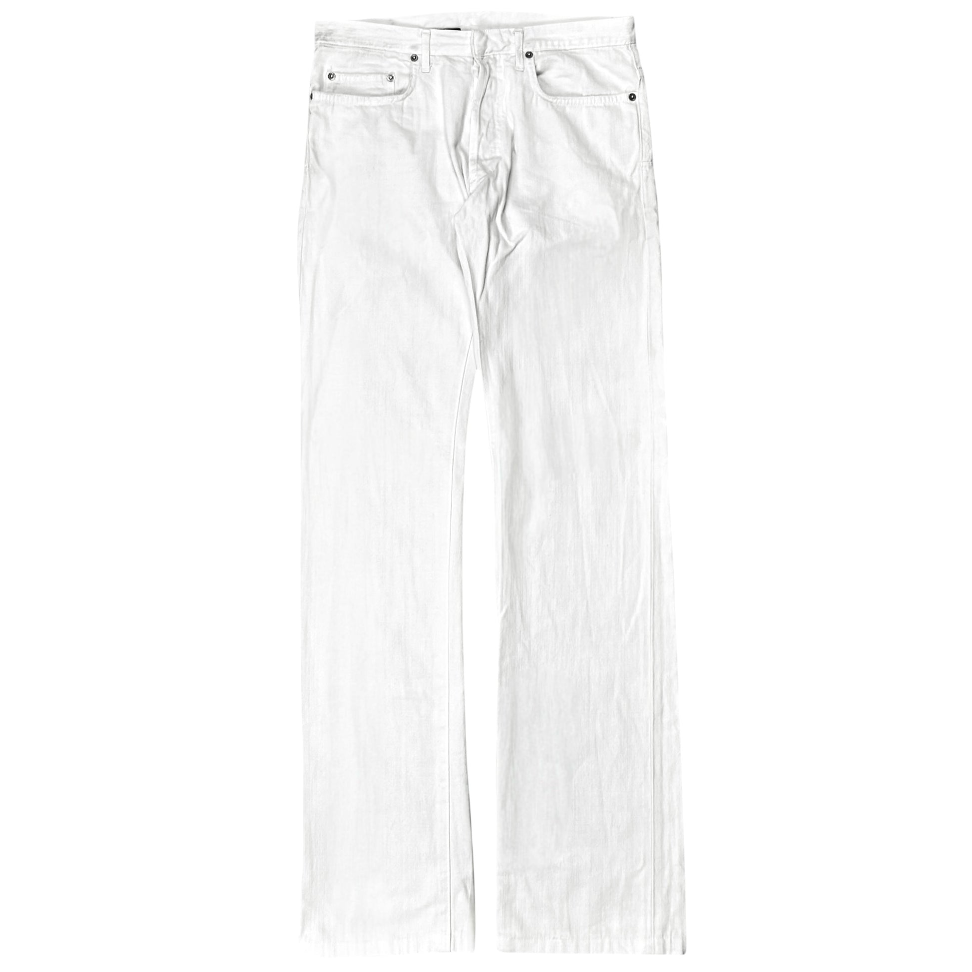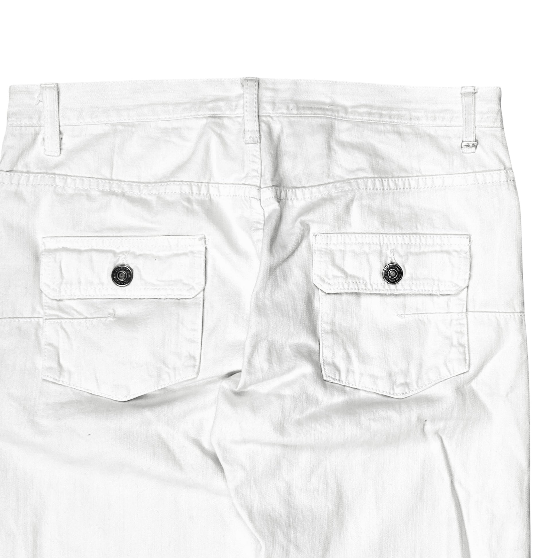 Denim pants from the Dior Homme Spring Summer 2006 collection back when Hedi Slimane was creative director. 3D cargo back pockets with silver branded button closure. Signature details including the back scars and the hardware metal detail at the belt loop. Made from a pure white cotton fabric. Slim cut.