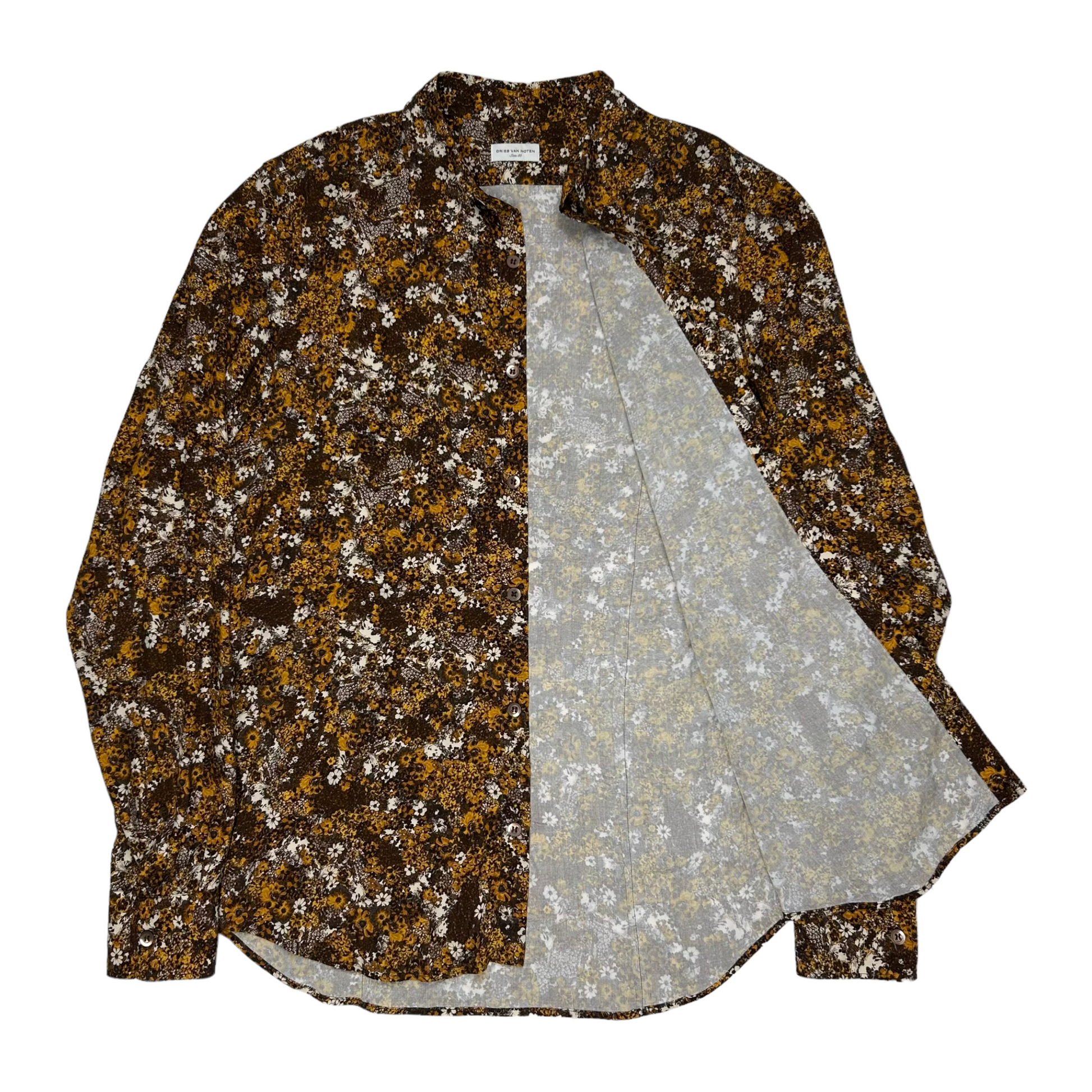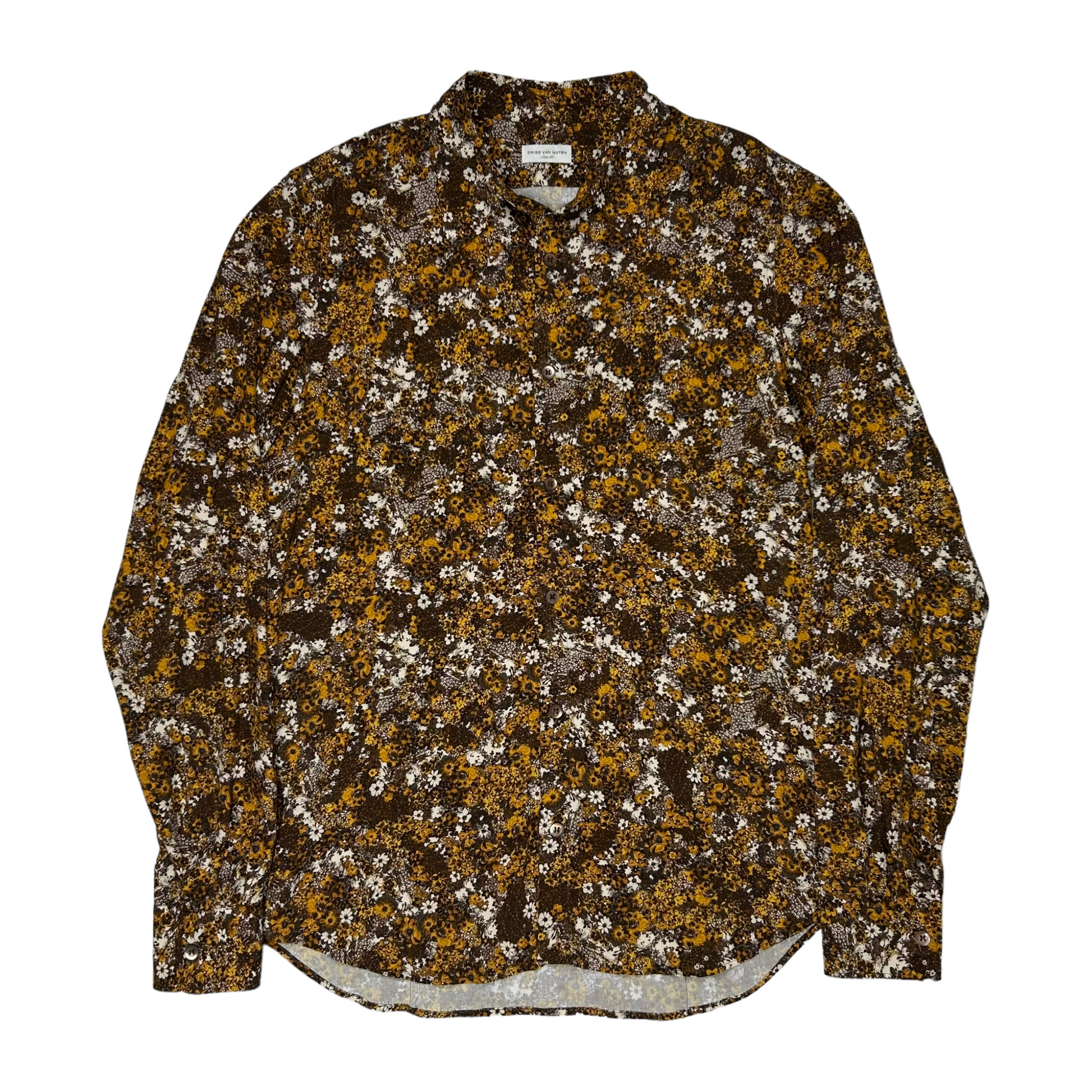 Button up shirt from Dries Van Noten’s Spring Summer 2021 collection. All over flower print with beautiful colors such as brown, yellow and white. Made from flowy viscose fabric. Regular cut. Retailed for around 350€.