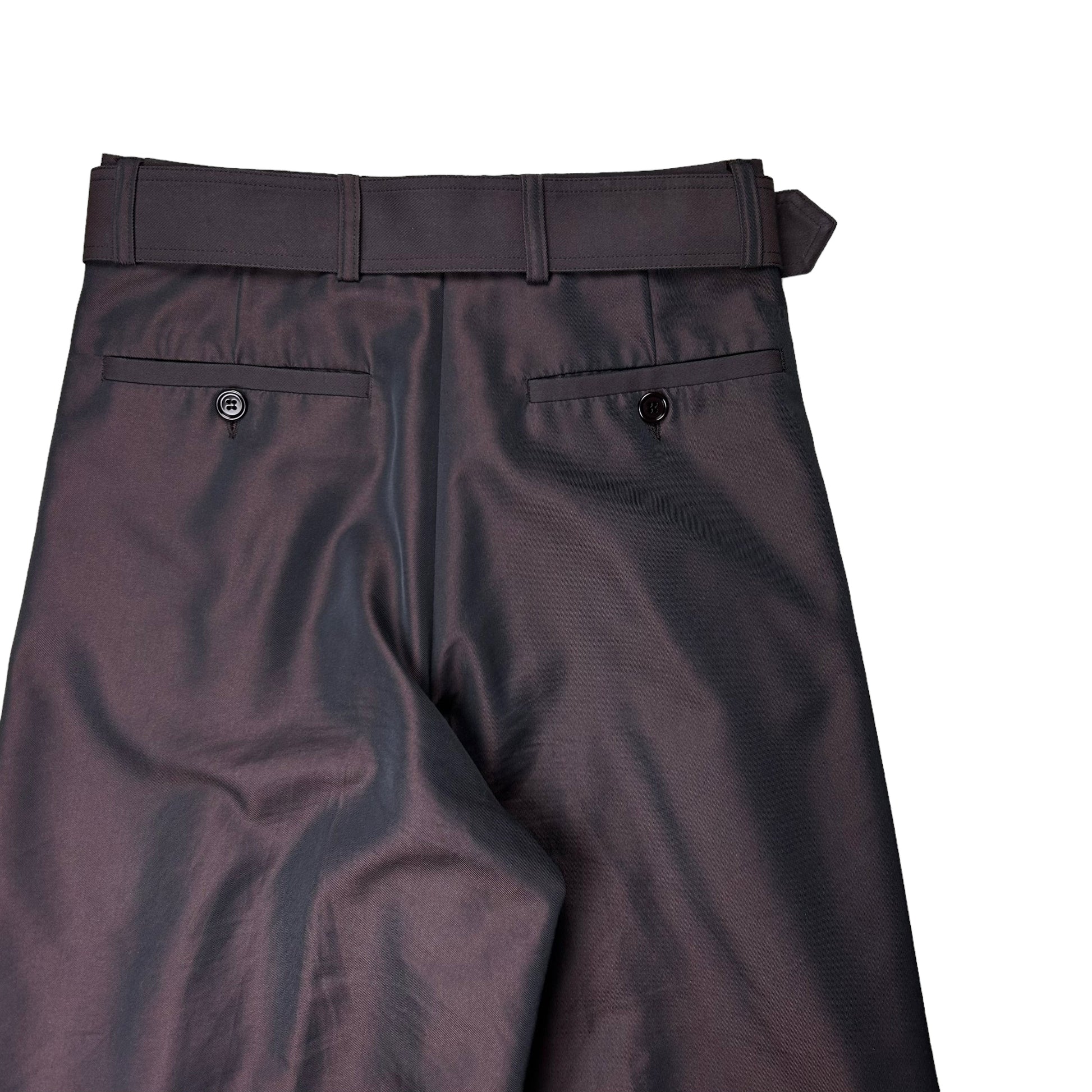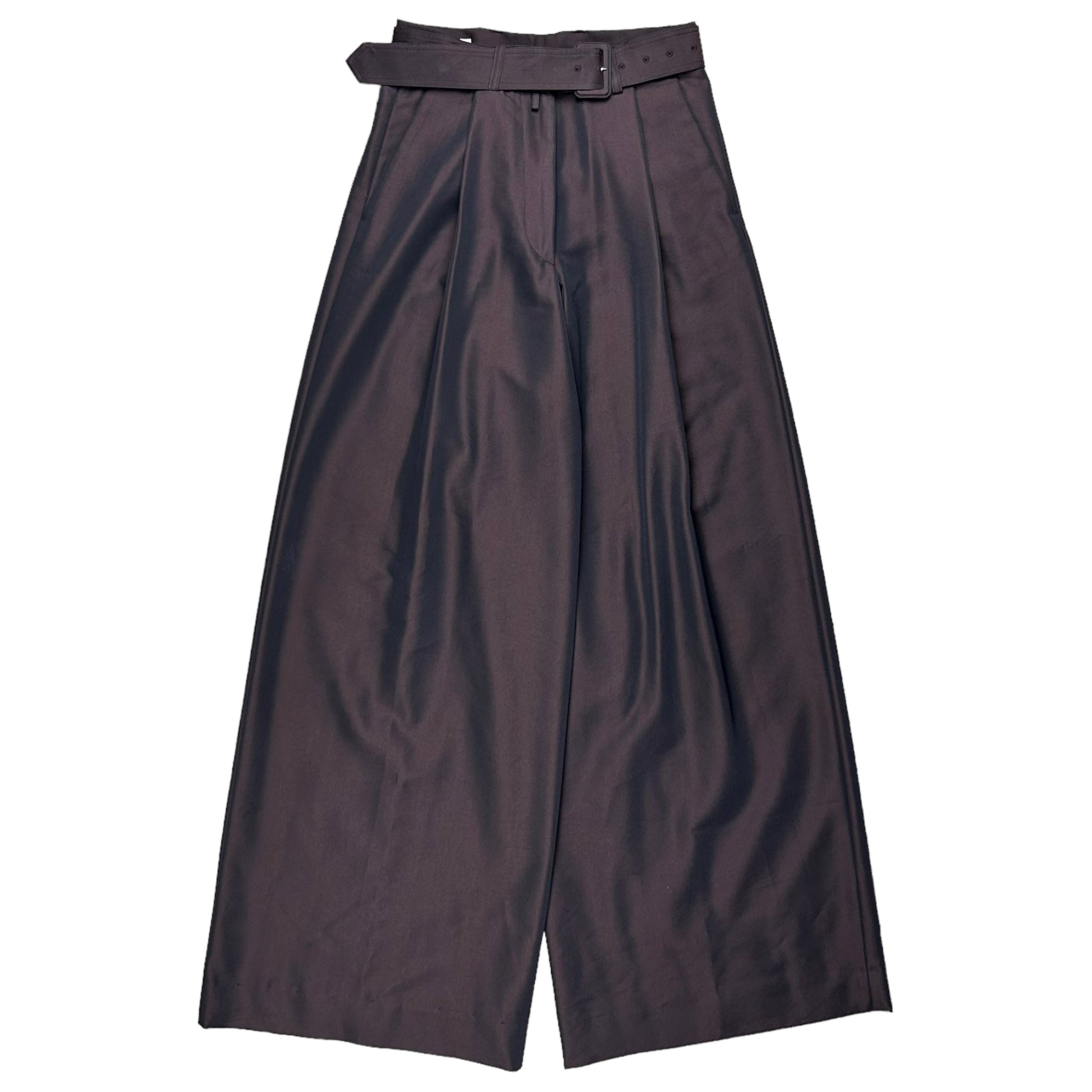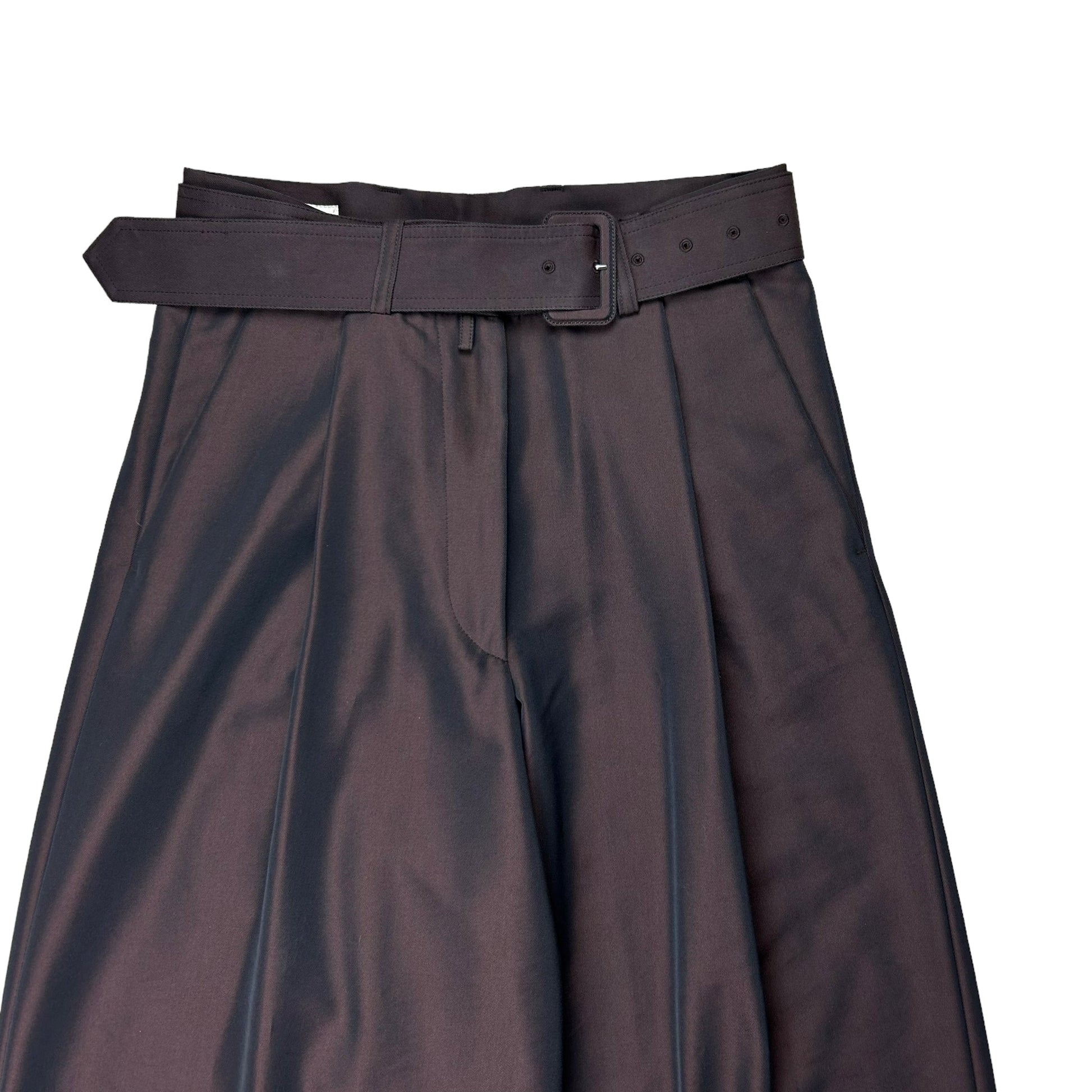 Brown trousers from the Dries Van Noten Fall Winter 2019 ready to wear collection. Integrated tonal belt system which can be used to adjust the width. Single pleated details which let the pants fall beautifully. Made from a brown polyester and cotton blend material whith an interesting shiny finish. Straight and really wide fit. Retailed for around 500€.