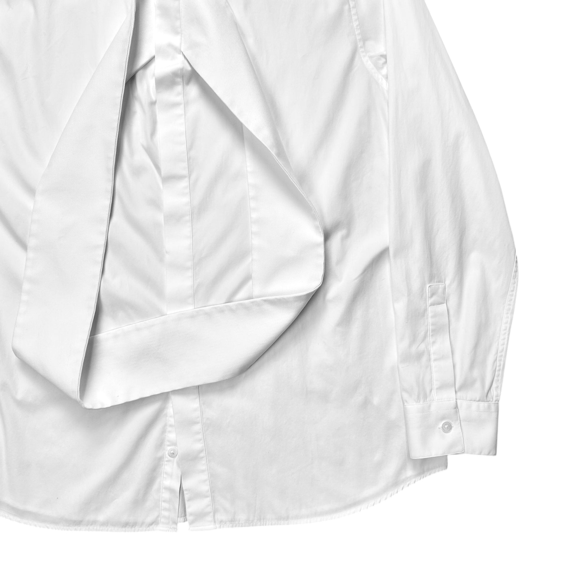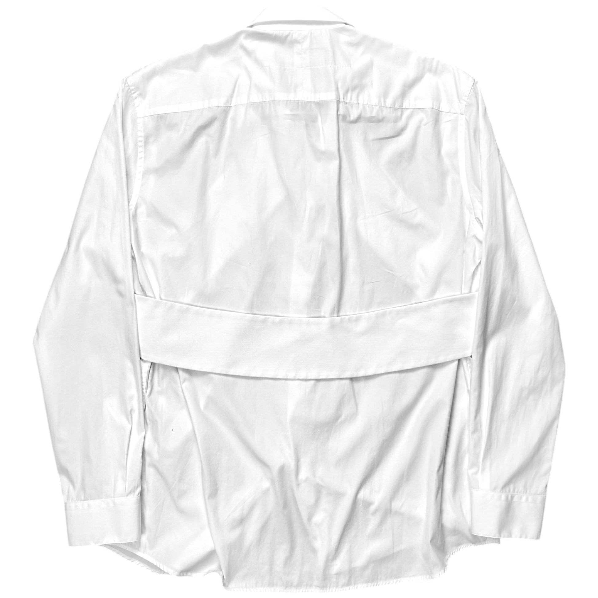 Button up dress shirt from the Givenchy Paris Spring Summer 2023 collection which was designed by Matthew Williams. Double harness strap going from the neck to the back allowing different styling options. Concealed tonal button closure with a pronounced collar. Made from a pure white cotton. Oversized cut. Retailed for around 700€.