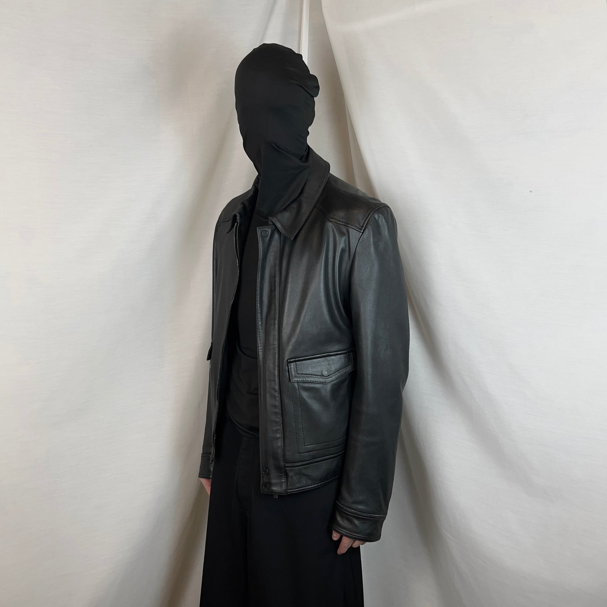 Flight jacket from the Givenchy Fall Winter 2016 collection which was deisgned by Ricardo Tisici. Utility pockets at the lower front with tonal zippers at the side and an extra tiny zip detail. Concealed zip closure with tonal press studs at the flap. Foldable work collar with reinforced moto shoulders. Made from a smooth black lam leather in black. Boxy cut.