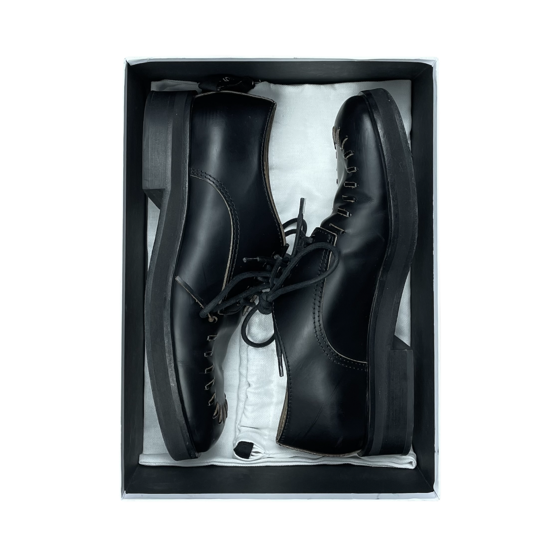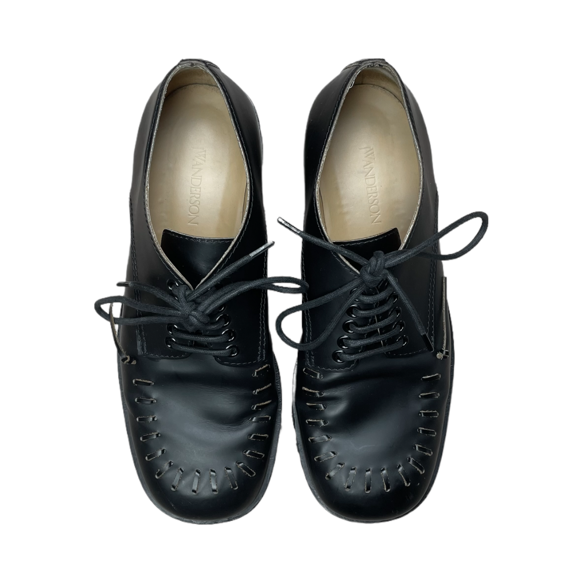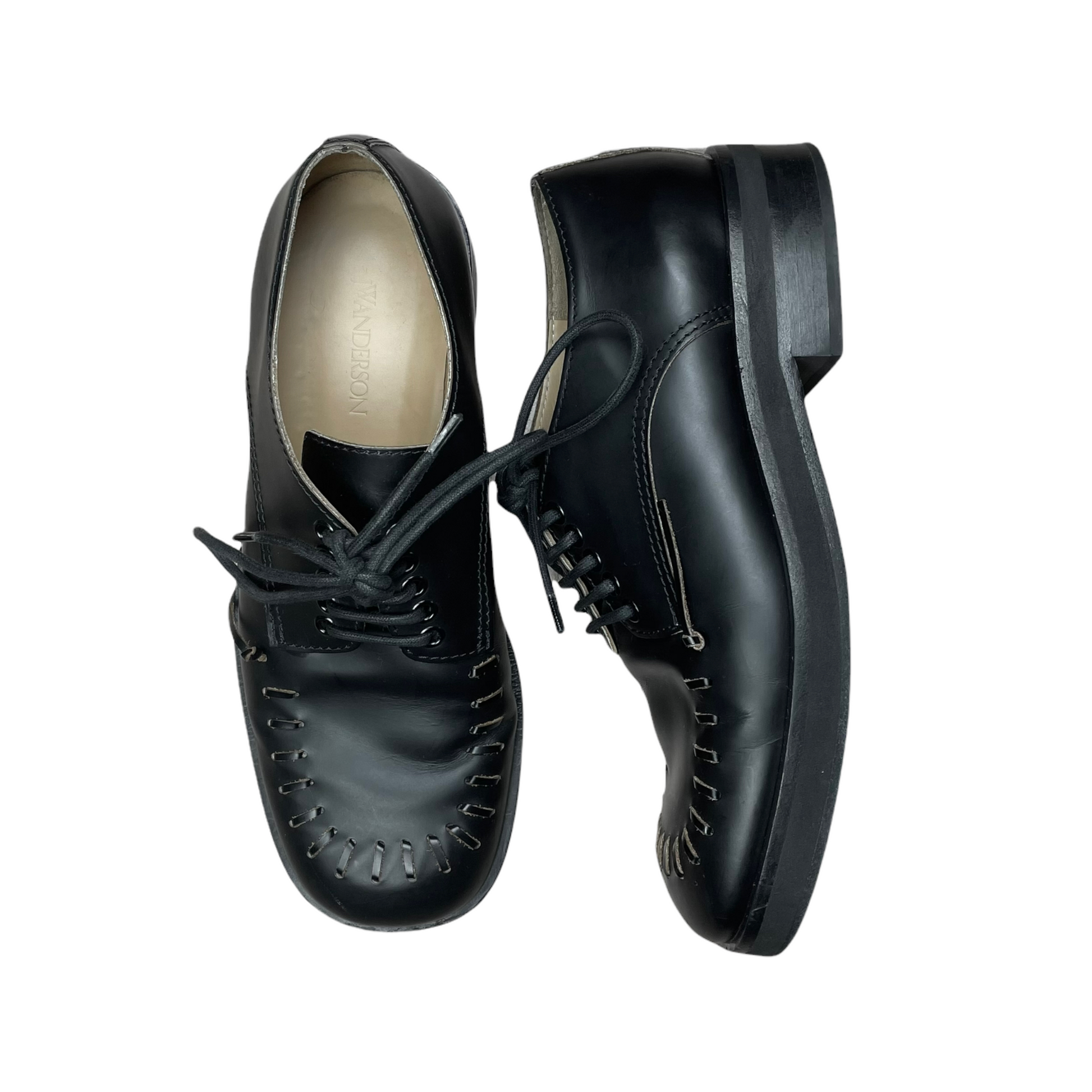 Elegant black lace-up shoes from one of UK’s most talented designer Jonathan Anderson. Unique decorative stitching at the toe box. Nice rounded shape of the toe. Made in Italy. Extremely good craftsmanship and overall quality. 100% calf leather. Retailed for over 650€.